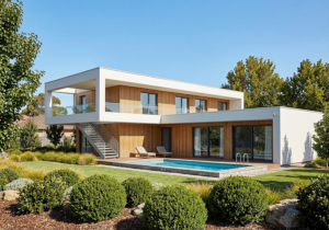 | Plochá střecha domu | Ploché střechy jsou praktičtější, co se týká údržby, opravy komína, čištění odvodňovacích prvků apod. Jednoplášťové ploché střechy jsou výborným prostředkem, jak eliminovat tepelné mosty nosnými prvky střechy (které se často vyskytují u střech šikmých s izolací mezi krokvemi). | Jednoplášťová lepená nebo mechanicky kotvená plochá střecha bez provozu, s hlavní vodotěsnicí vrstvou ze souvrství asfaltových pásů nebo hydroizolační fólie z PVC-P, spádová vrstva vytvořena tepelnou izolací. |